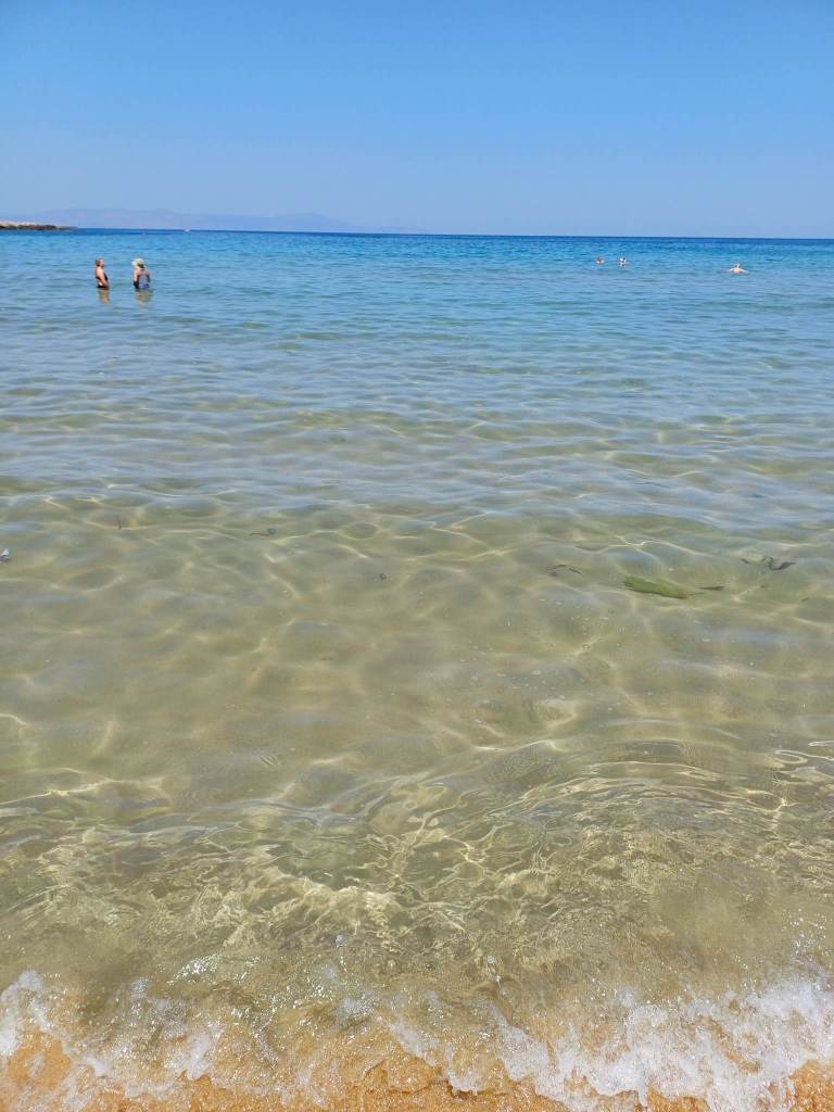 Dopo una lenta colazione partiamo alla volta di Falasarna, dopo circa un’ora abbondante d’auto scegliamo di fermarci nella caletta più piccola a Nord della grande spiaggia. Qui noleggiamo un ombrellone e due lettini al costo di 20€, un po’ sopra alla media delle spiagge. Il mare è incredibile, turchese brillante, e anche dove l’acqua è profonda è così cristallino che si vede perfettamente Il fondale.