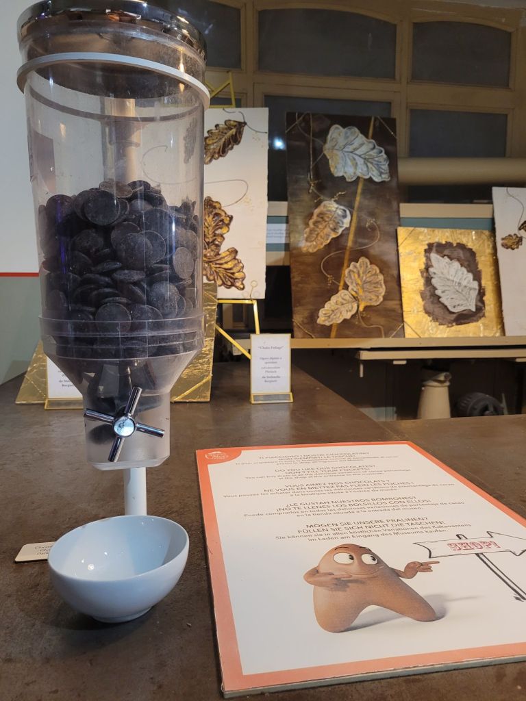 Una volta superata la biglietteria, una scala, o in alternativa l’ascensore vi porterà esattamente sotto la meravigliosa pasticceria Pfatisch, dove il museo del cioccolato è stato allestito. Preparatevi a un museo immersivo, in cui saranno coinvolti tutti i sensi. Sì, anche l’olfatto e il gusto!